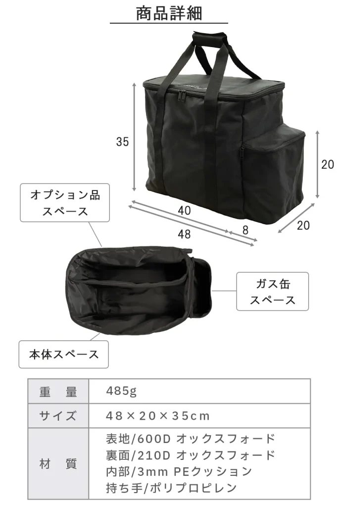 本体自体にハードケースはついているものの、CB缶や他のグリルなどを一緒に収納は出来ないのがネックでした